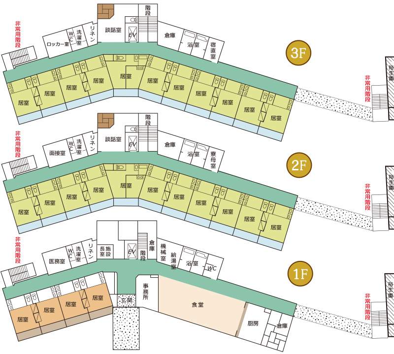 - 豊かな自然環境「健康で明るく充実した生活を安心して送っていただける施設でありたい」と、職員一同、真心こめたサービスをさせていただきます。