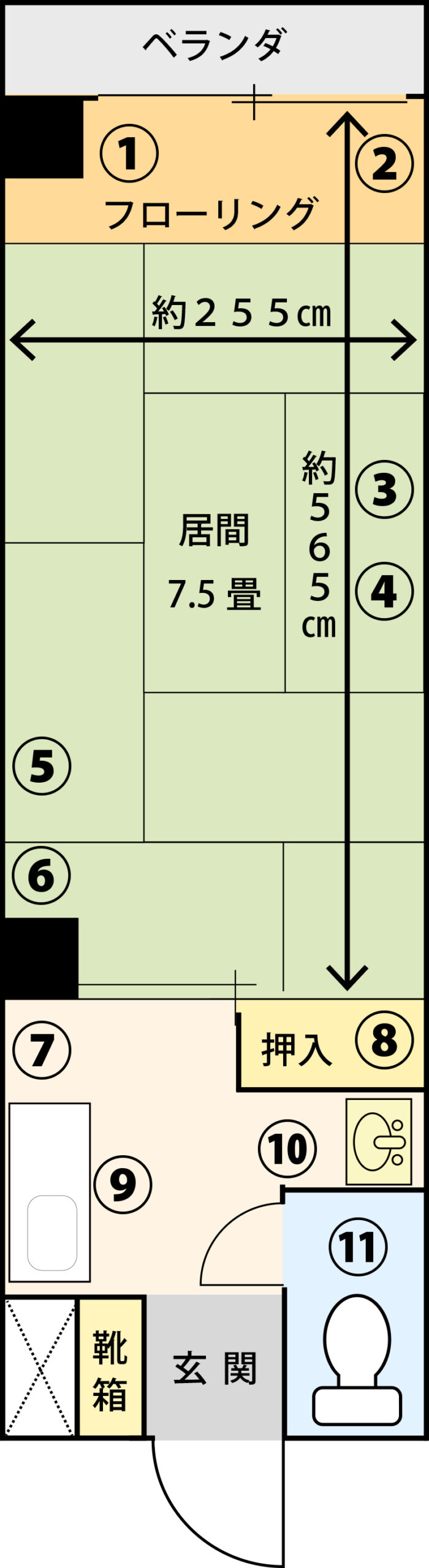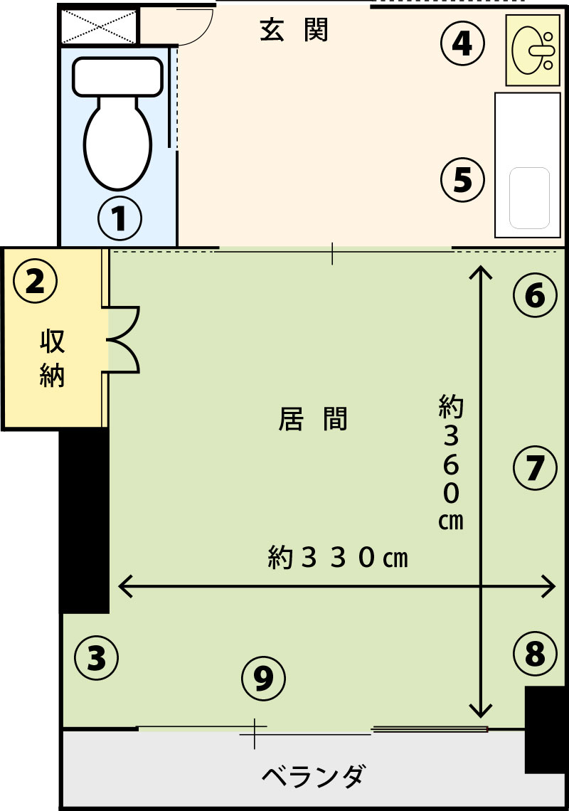 ※冷蔵庫はついておりません。⑦が冷蔵庫置き場となります。